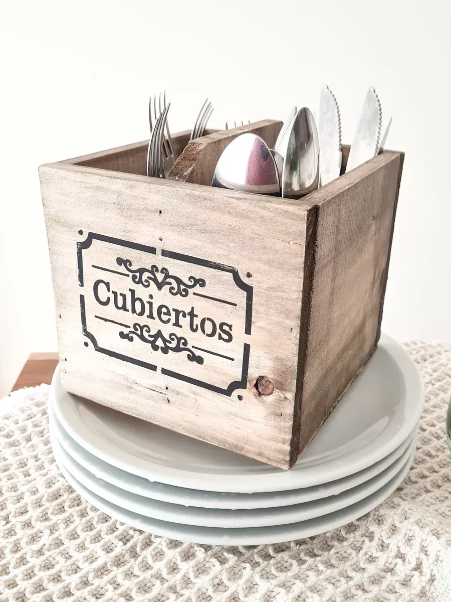 Cubiertero Madera 2 Divisiones 14x16x15 Deco