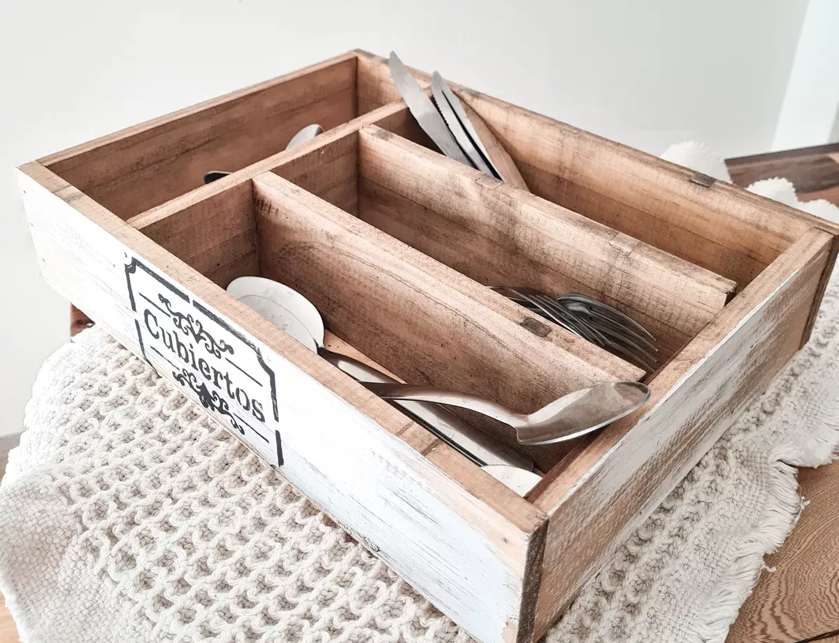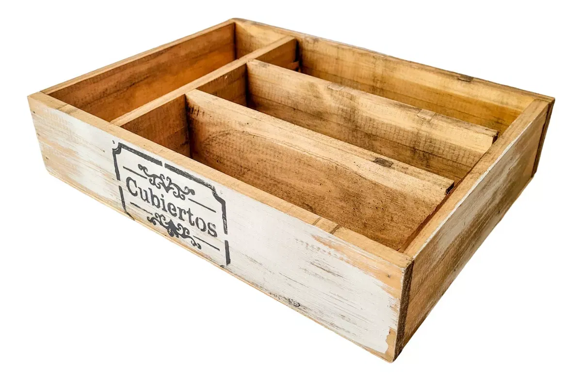 Cubiertero Madera 4 Divisiones Deco 35x25x8